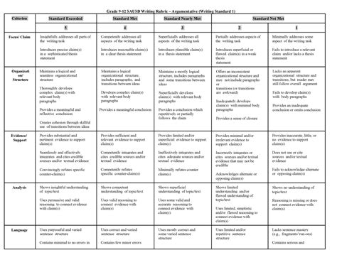 nyc argumentative essay rubric grade 9